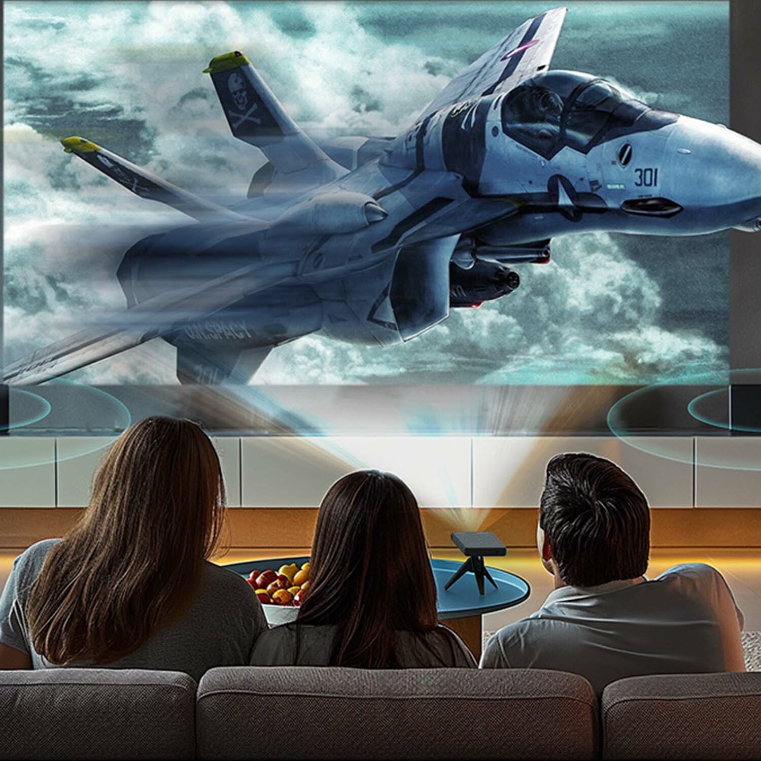 — TURN HOME INTO A CINEMA - MULTIPLE SCREEN SIZES The projector uses DLP display technology, HD 4K decoding with 200 inch giant screen. You can watch movies comfortably at home. You can experience 30-200 inch picture without screen. It appUes to many types of houses. No matter how big the house is. how big is the cinema!
