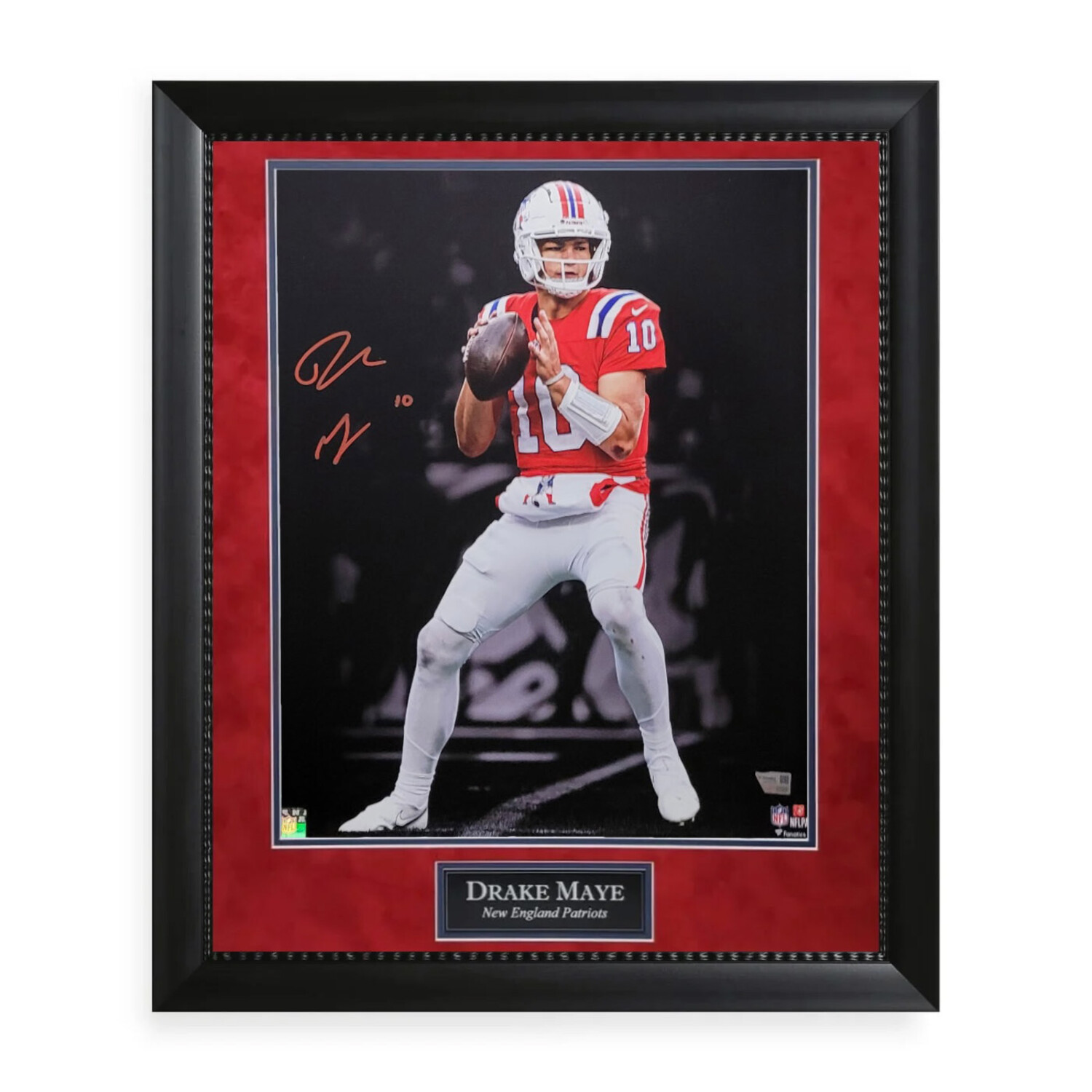 Drake Maye // NE Patriots // Signed Photo + Framed // Red
