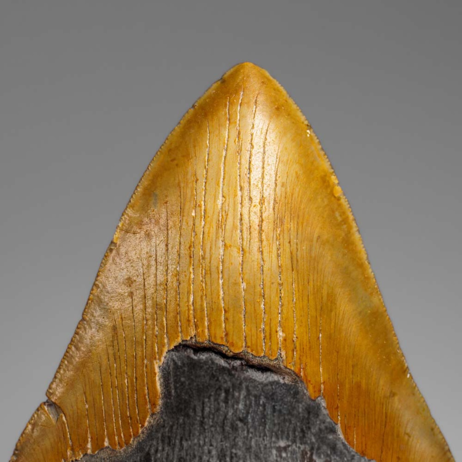 Display a piece of the past with this incredible Megalodon Shark Tooth. Megalodon was a prehistoric shark that may have been 50 feet long or more, two or three times as long as the Great White Shark! Just like modern sharks, this prehistoric predator did not have any bones to leave in the fossil record, except for their massive teeth. This Megalodon Shark Tooth is 100% genuine, unaltered and discovered by divers in deep waters off the coast of the Carolinas. These specialists search for fossils that are buried in the ocean floor. This specimen is accompanied with a Certificate of Authenticity and comes in a display case to show off the incredible size of this treasure.
