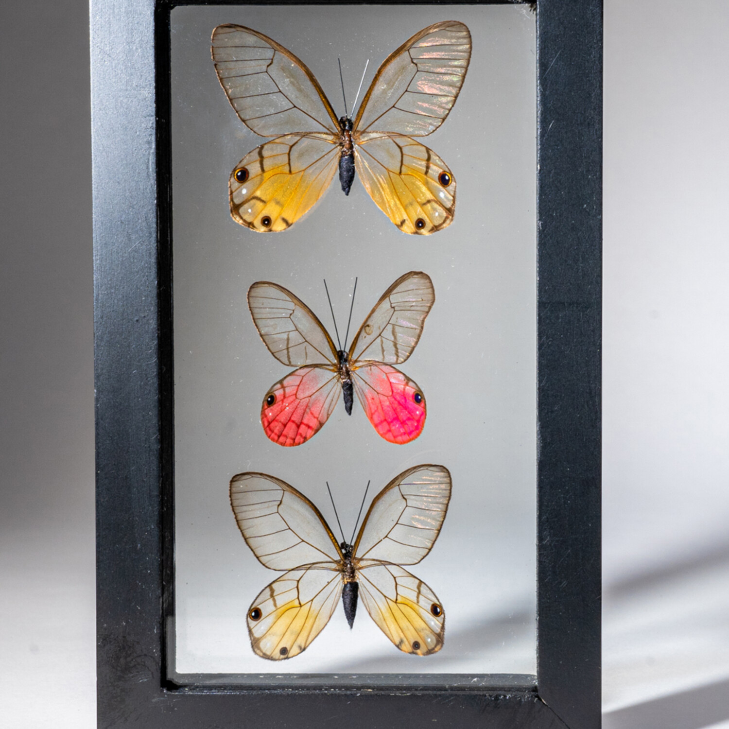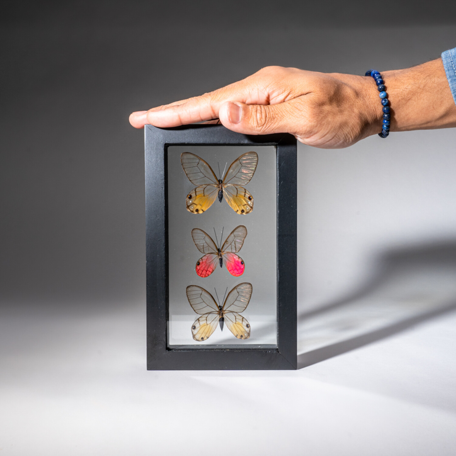 3 Genuine Glasswing Butterflies in Black Display Frame