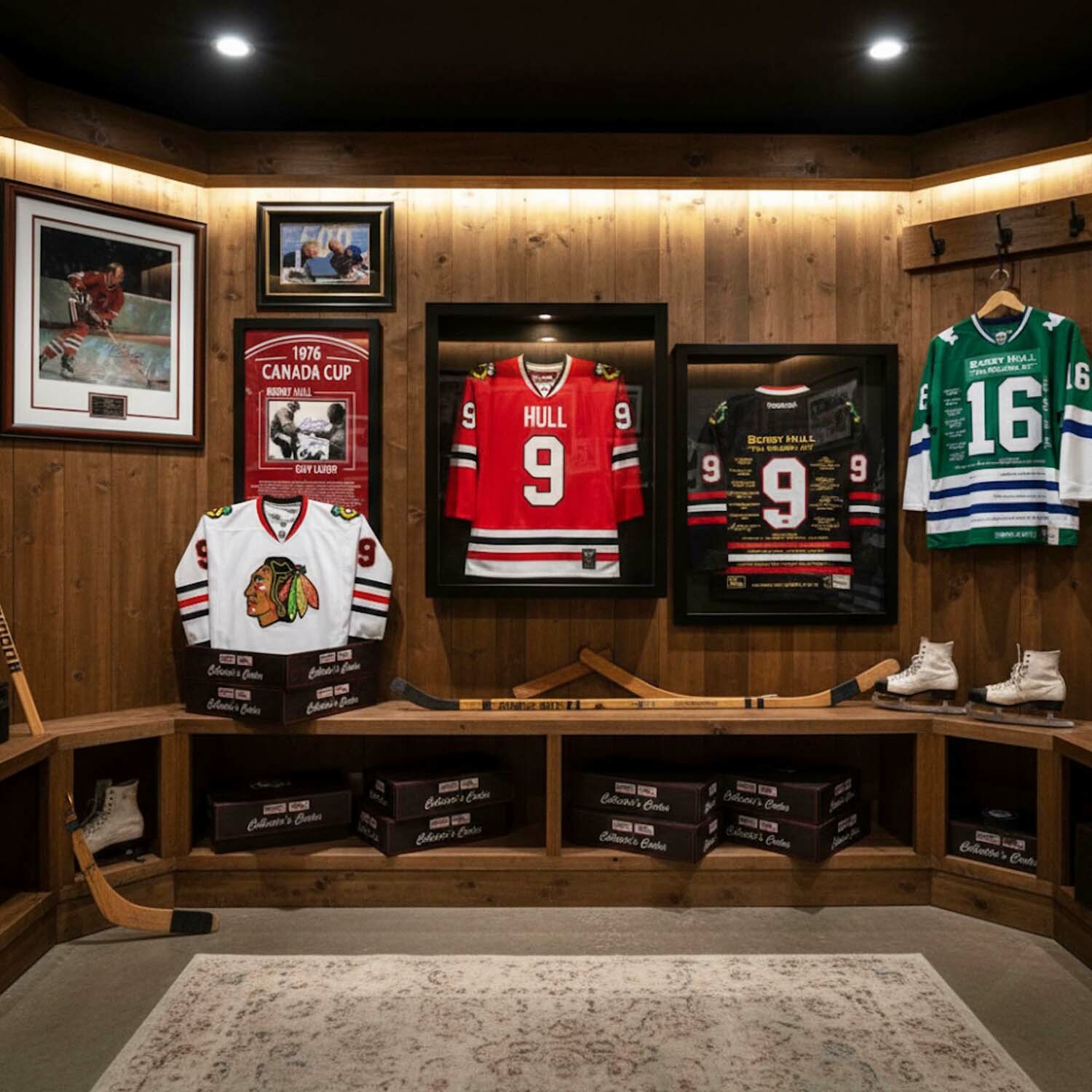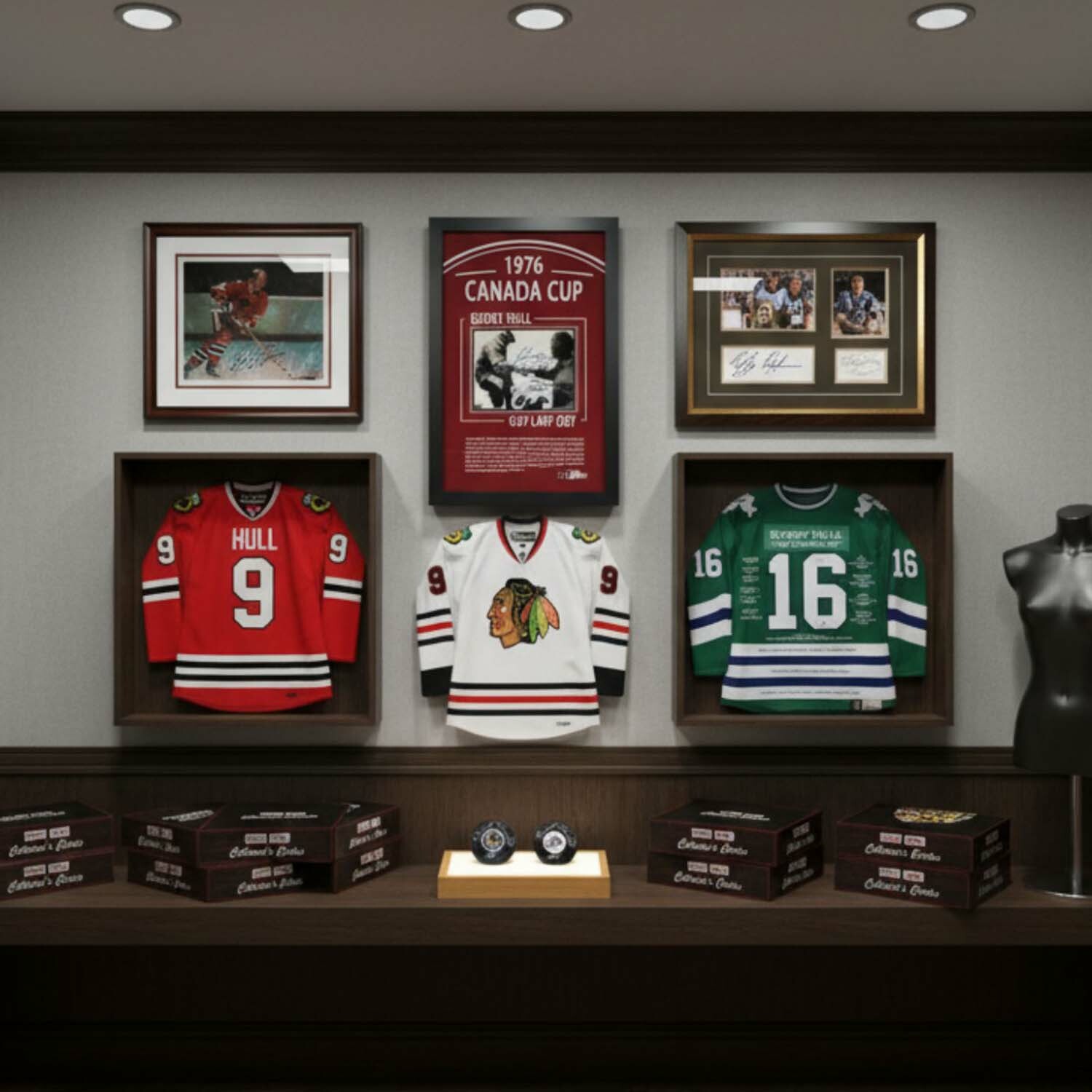 — Chance for greatness: Bobby Hull Career Jersey (#9/399), Hartford Whaler Jerseys (#9/16), premium numbered frames, and unique owner’s stash pieces