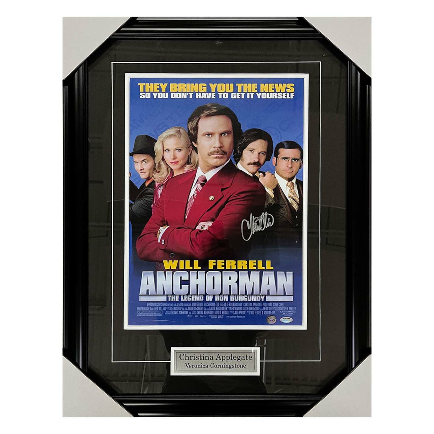 Get this amazing framed piece featuring an 11x17 "Anchorman" movie poster that has been autographed by Christina Applegate. Applegate played "Veronica Corningstone" in the film.