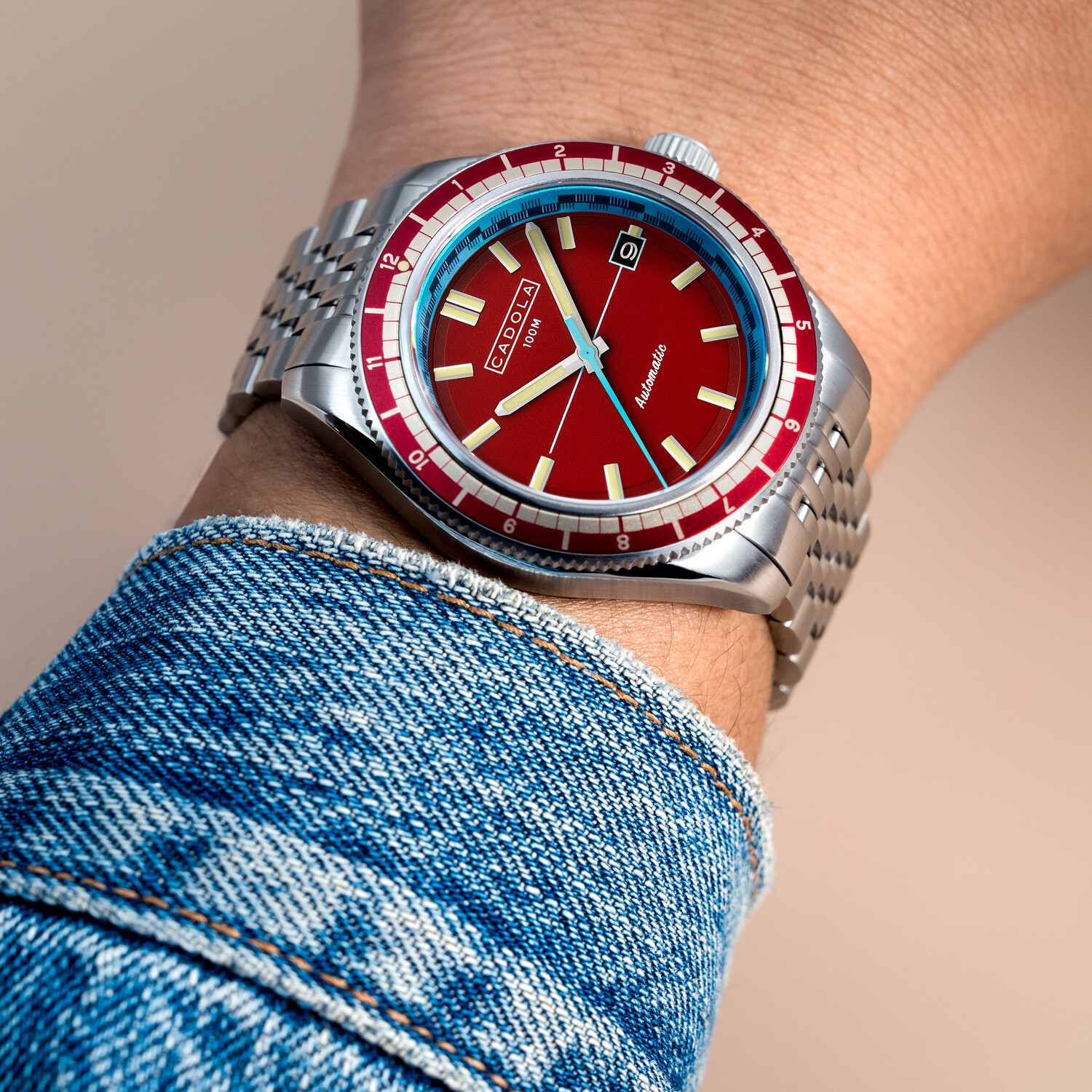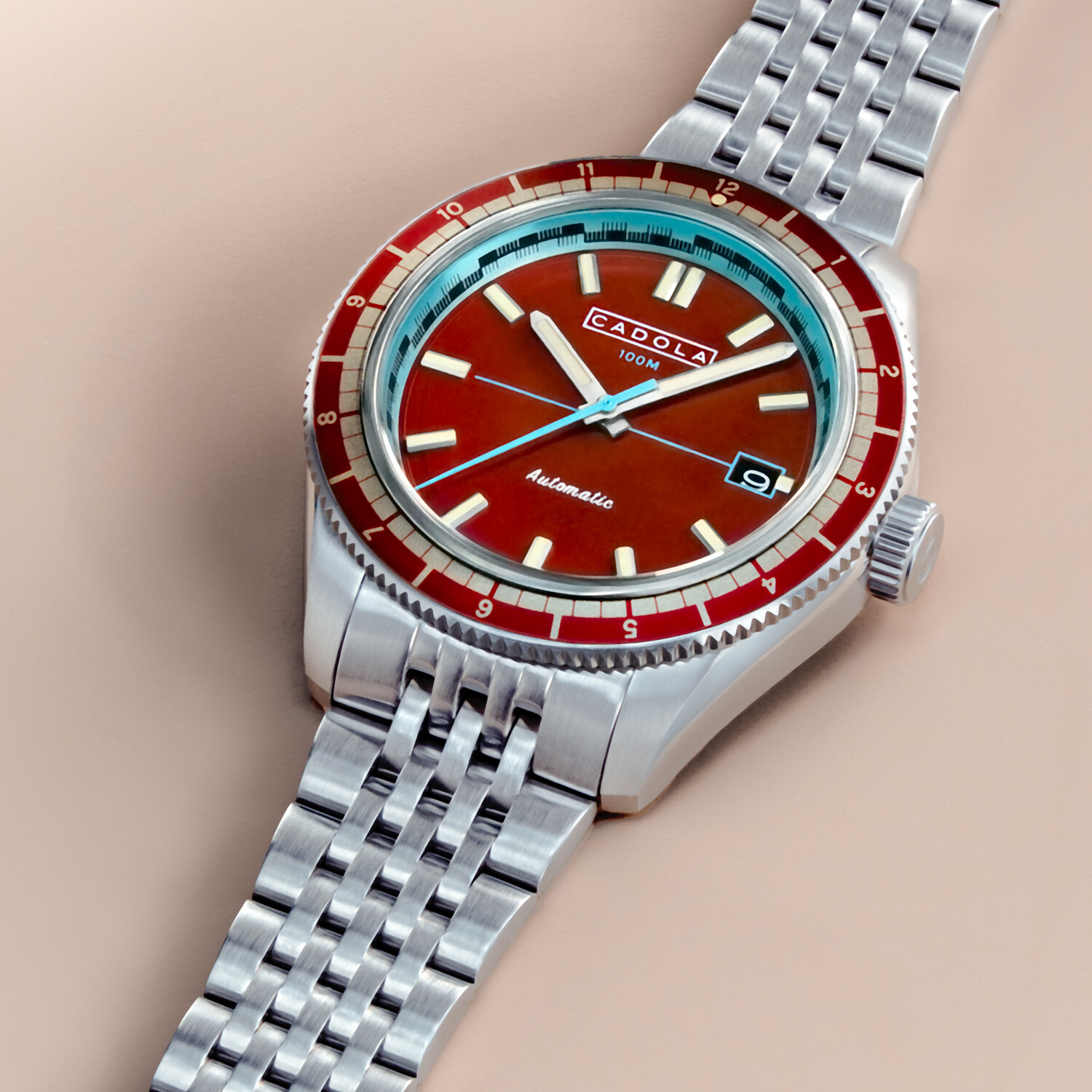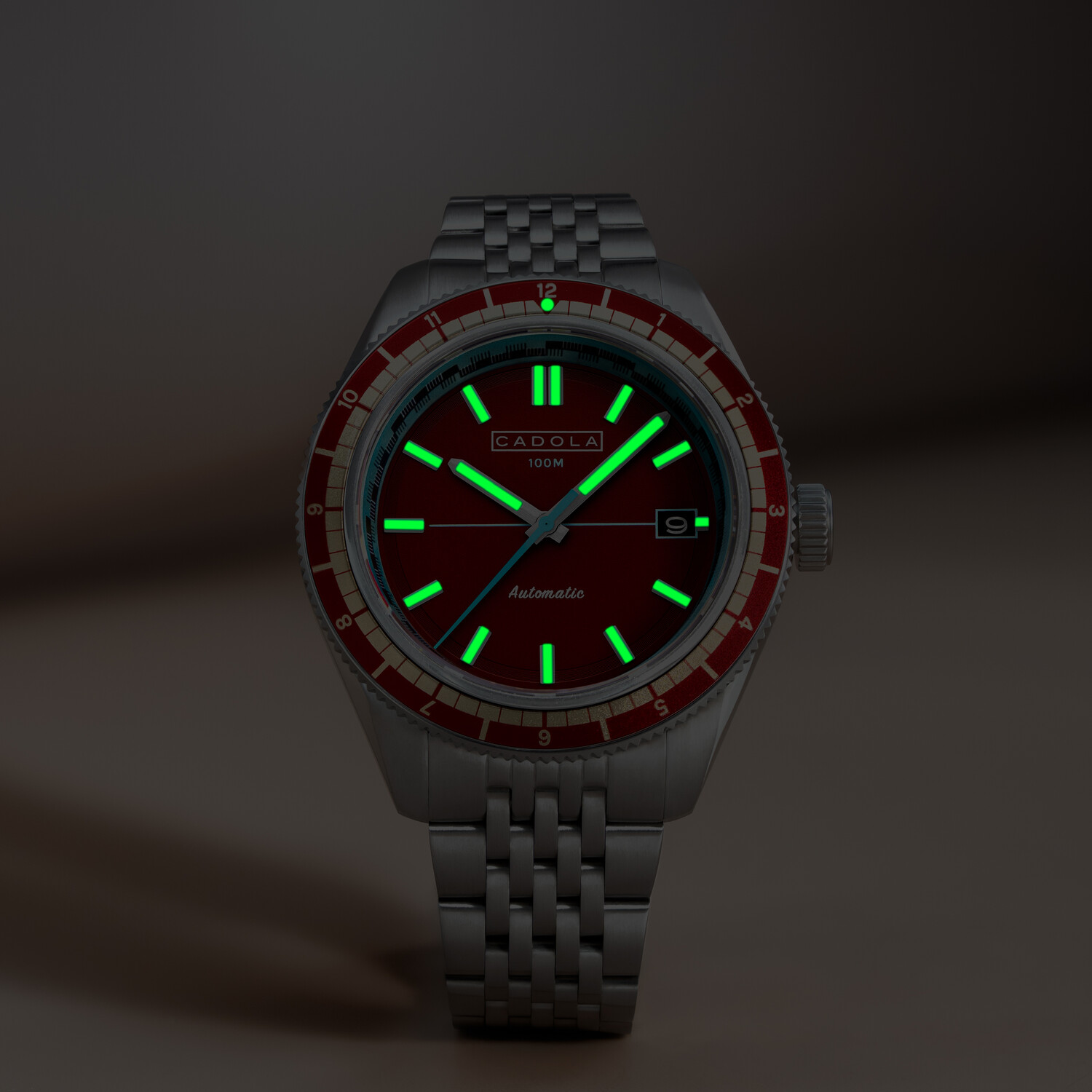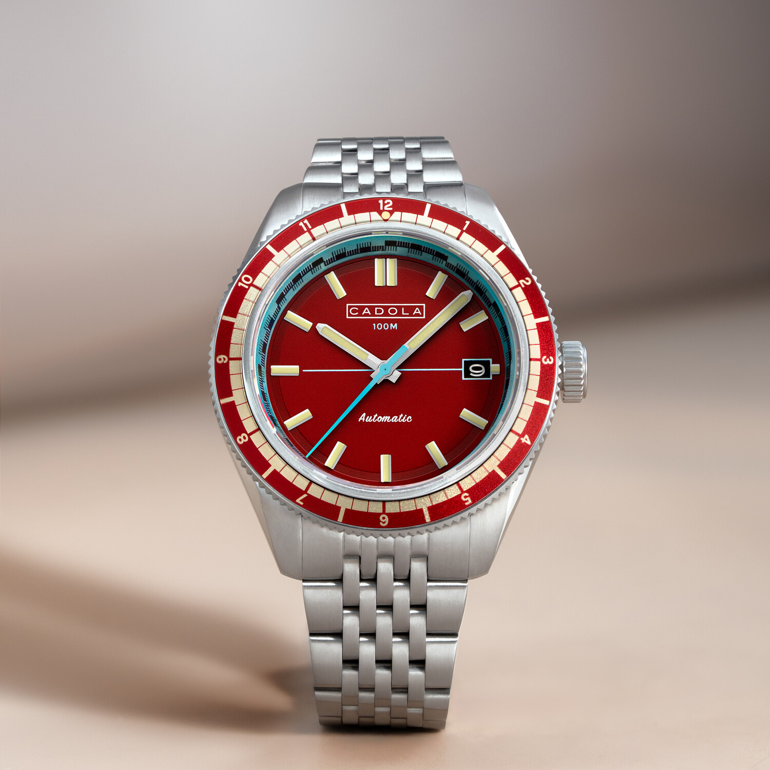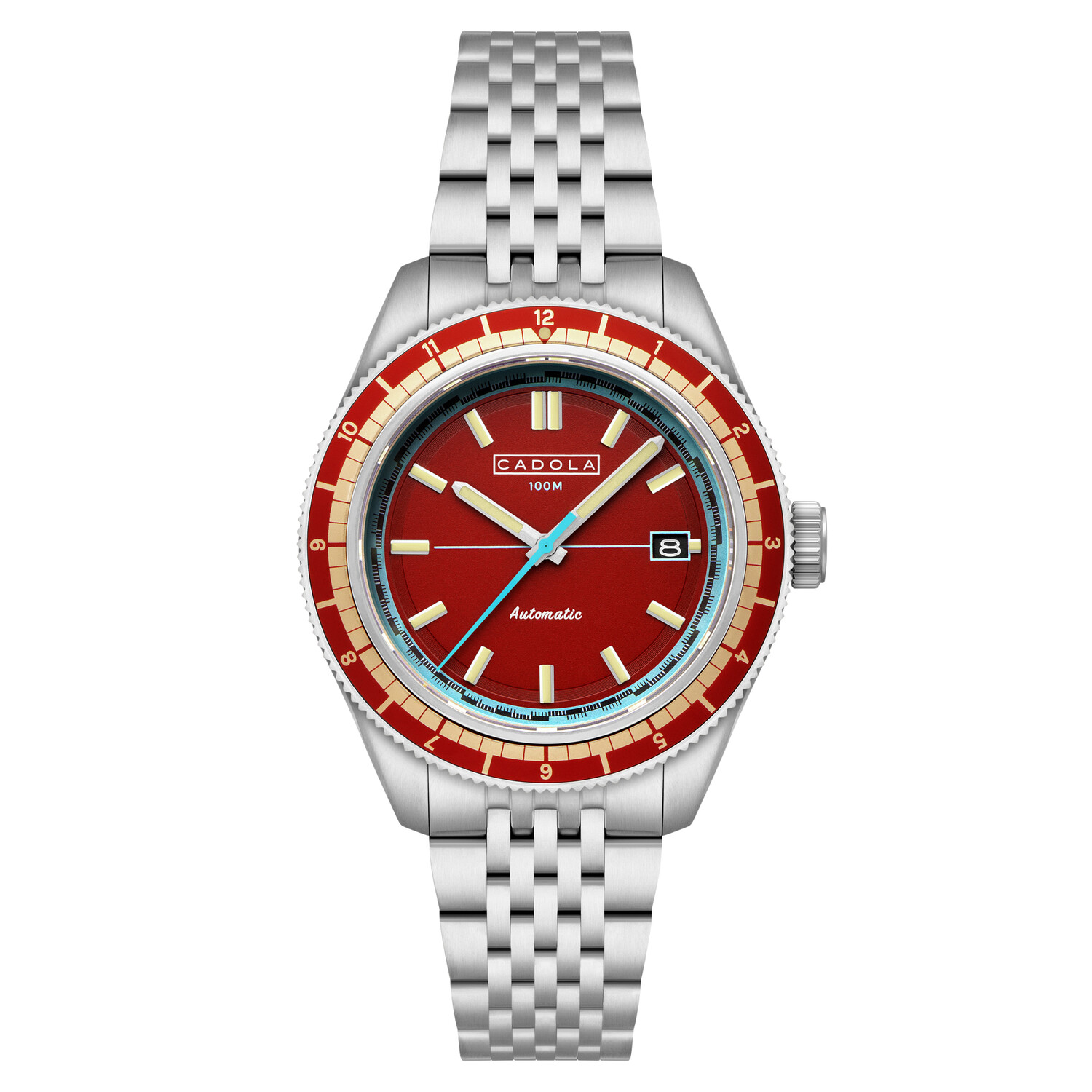 COLLECTION: AHRENS MODEL: CD-1061-22 MOVEMENT: JAPAN AUTOMATIC CASE MATERIAL: STAINLESS STEEL CASE DIAMETER (MM): 42 CASE THICKNESS (MM): 13.8 CASE SHAPE: ROUND CASE COLOR: STAINLESS STEEL DIAL COLOR: RED BAND: STAINLESS STEEL BAND COLOR: STAINLESS STEEL BUCKLE: FOLD OVER BUCKLE WITH SAFETY LOCK AND PUSH BUTTON BAND WIDTH (MM): 20 WATER RESISTANCE: 10 ATM WATCH WEIGHT (G): 150 WARRANTY: 2 YEARS