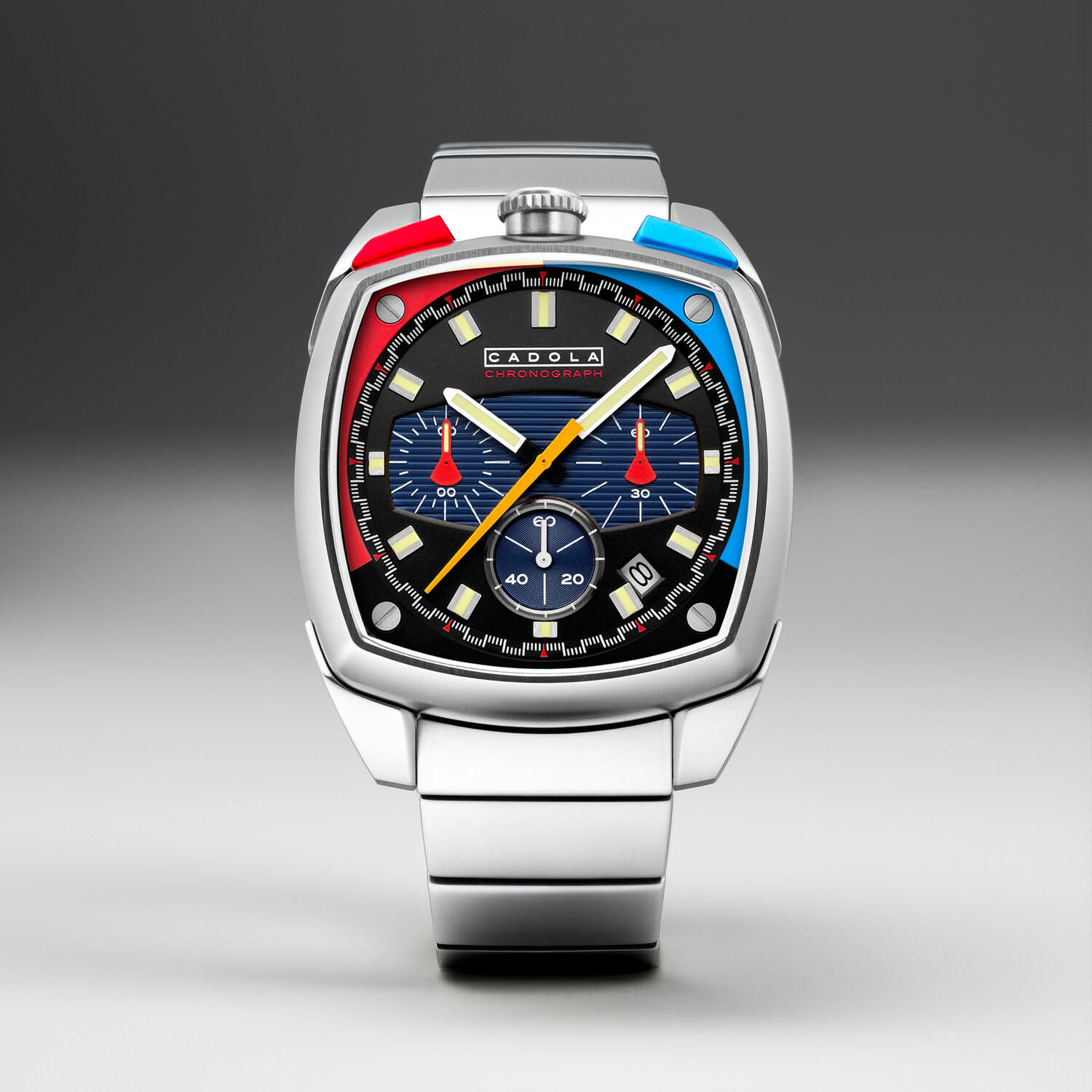 Inspired By Vintage Racing Chronographs And Turbocharged For Today's Style-savvy Drivers, The Taurus Chronograph Features A Bull-head Configuration With Aluminium Pushers, Placing Control At The Top For Intuitive, Driver-focused Operation. Encased In A 39mm Stainless Steel Square Chassis With Classic Racing Colours, The Taurus Charges Forward With Purpose And Punch.