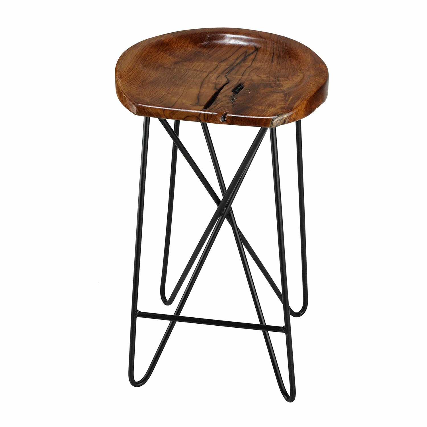 Bare Decor Aloha Backless Live Edge Teak Counter Stool with Solid Black Metal Legs, 27" Tall