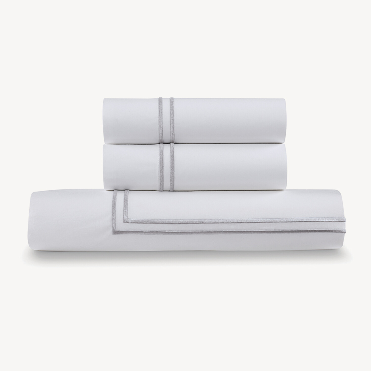 3-Piece Cotton Duvet Cover Set with Satin Stitching // Silver