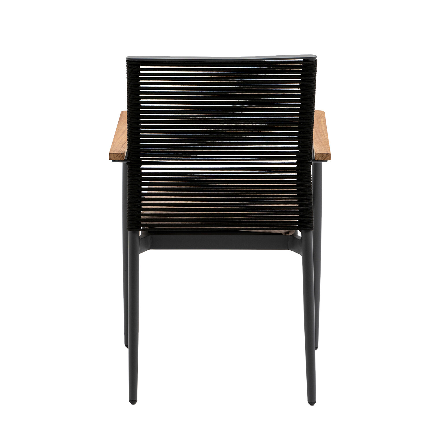 Sharply accented with teak wood armrests, the Skog Armchair adds a modern silhouette to any space. Cleverly designed with style and comfort in mind, it is perfect for achieving a contemporary look indoors or outdoors.