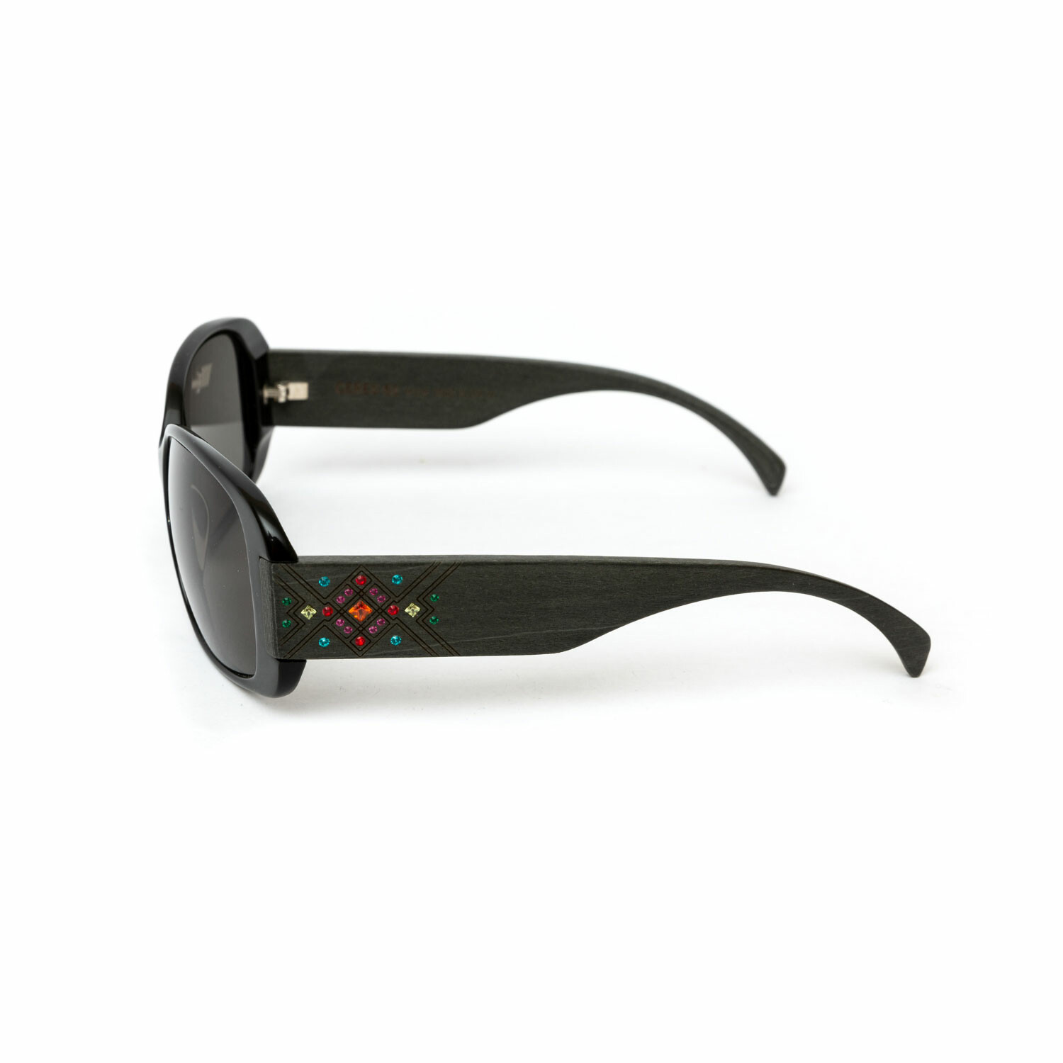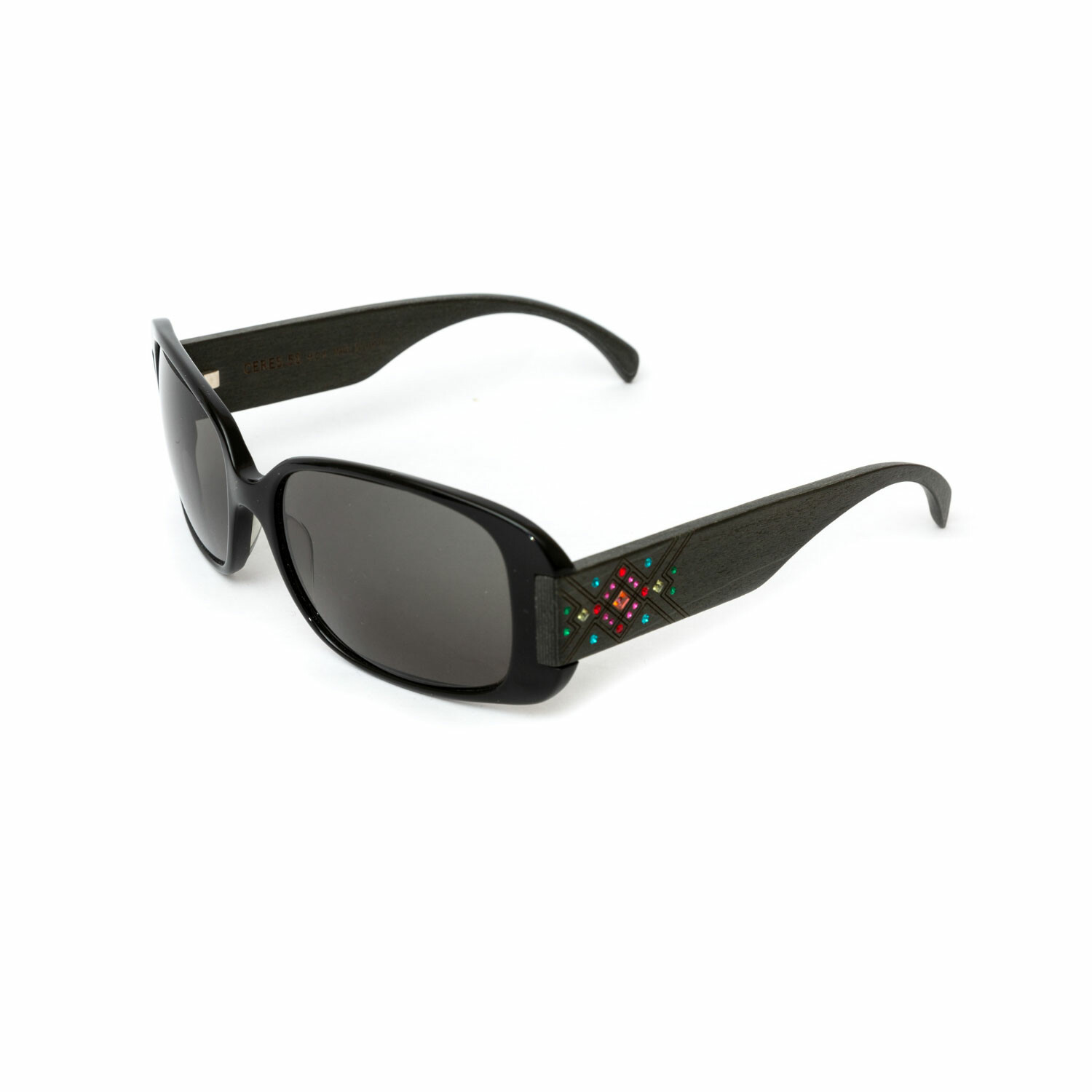 Ceres // Unisex Black Acetate & Grey Wood Sunglasses // Colored Swarovski Stones // Black + Grey