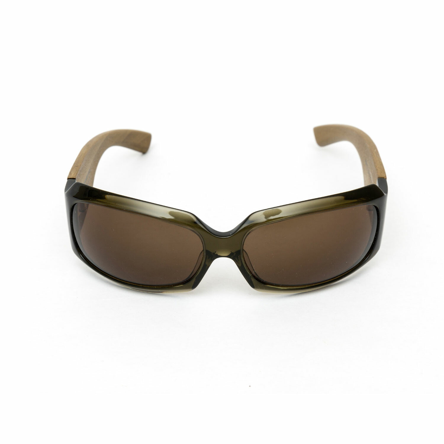 Uranie // Unisex Olive Green Acetate & Wood Shield Sunglasses // Olive Green + Brown