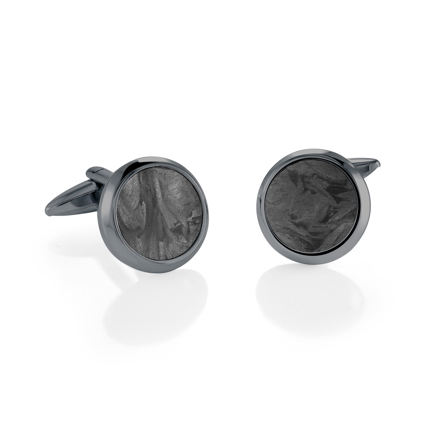 Black Stainless Steel // Carbon Fiber // Round Cufflinks
