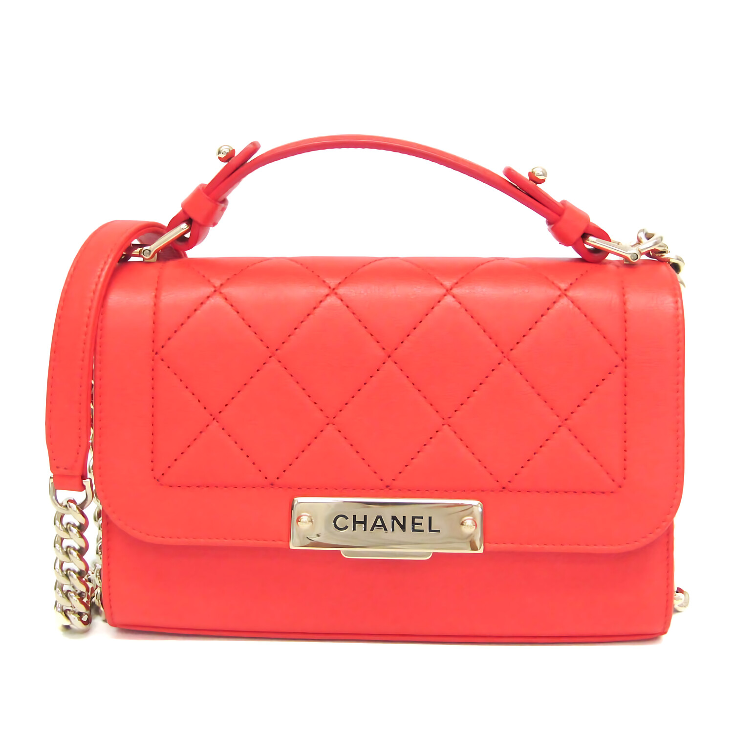 Chanel // Leather Matelassé Quilted Chain Bag // Orange // Pre-Owned