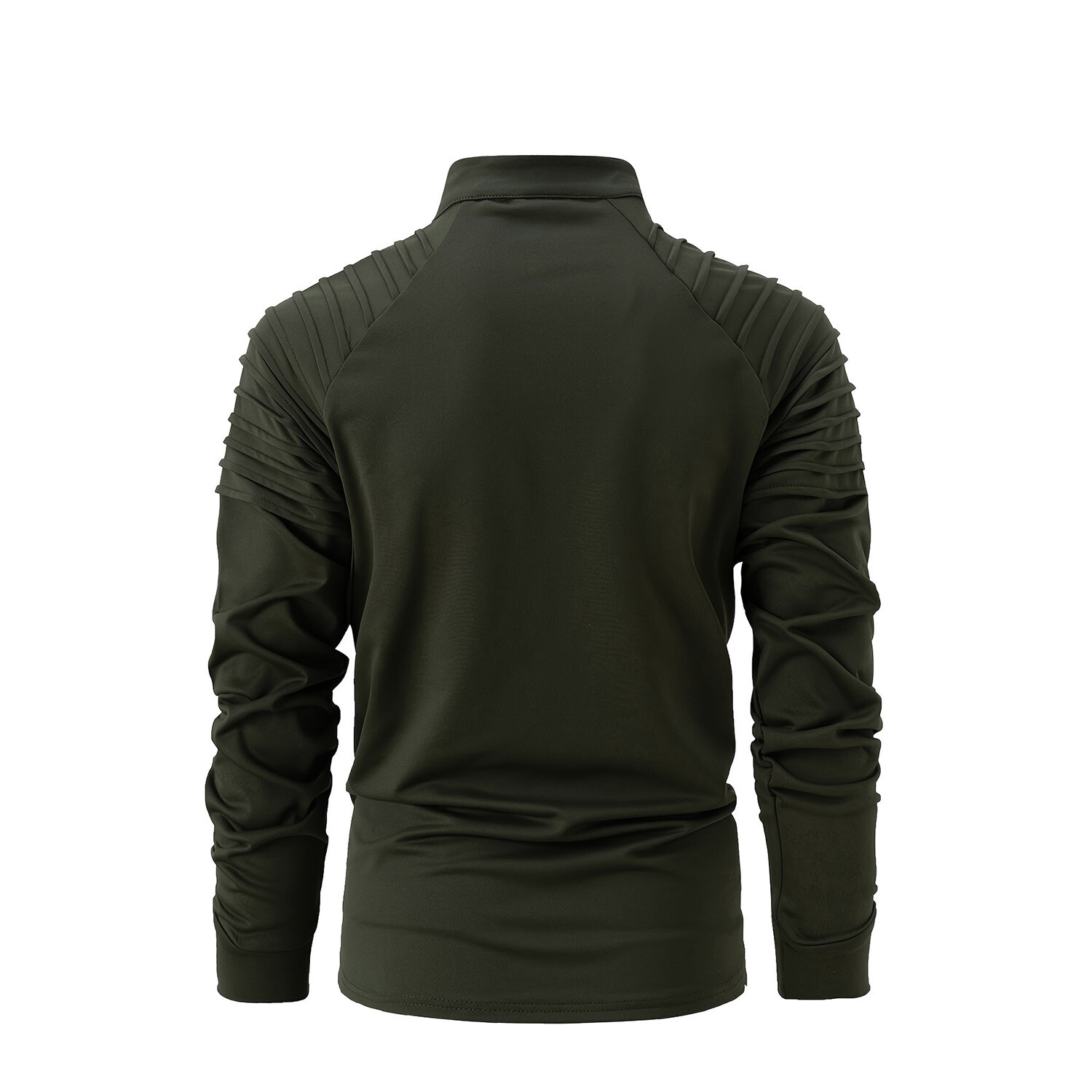 Quarter-Zip Long Sleeve Shoulder Ribbed Shirt // Army Green