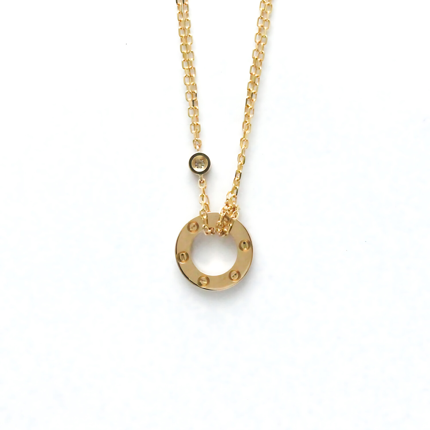 Cartier // 18k Rose Gold Love Circle Diamond Pendant Necklace // 14.96"-16.14" // Store Display
