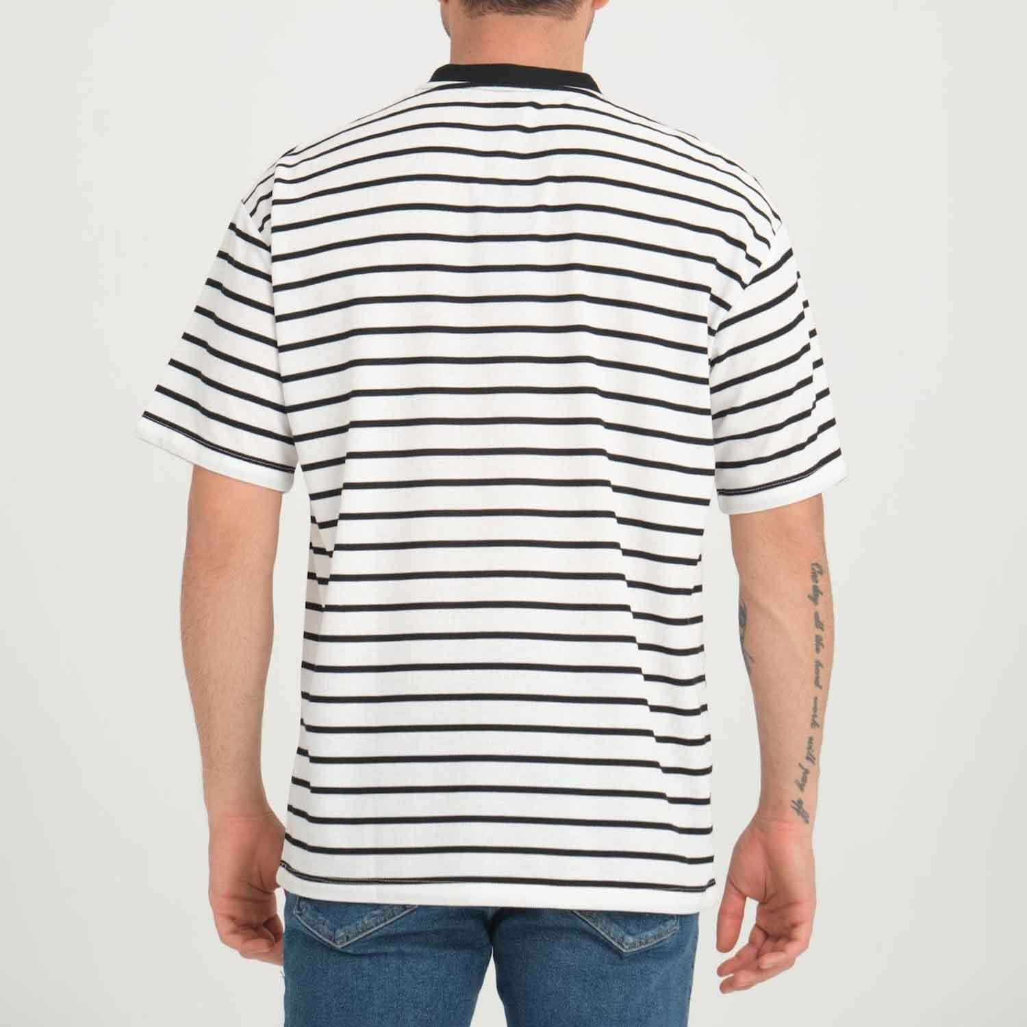 Envelope Collar Detailed Striped Oversize T-Shirt // Black