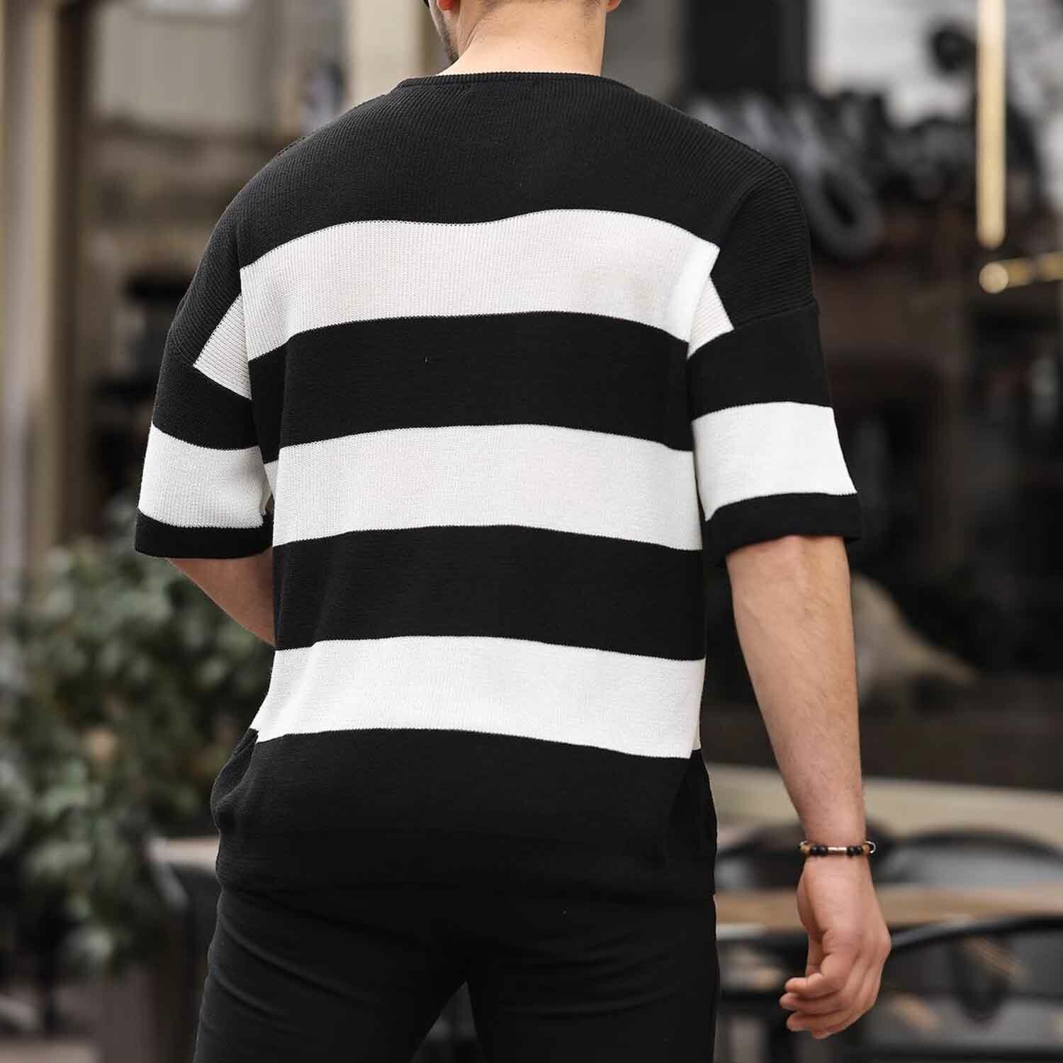 Oversize Striped Basic Knitwear T-Shirt // Black